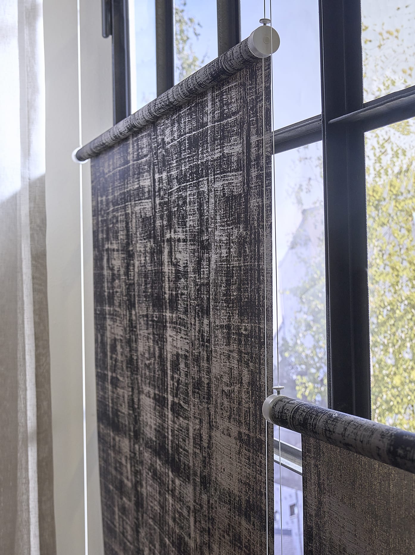 Sicht- und Sonnenschutz in einem: Das neuartige “Flex” Maßrollo ist die kleine Schwester des design-prämierte Rollo Tube-Systems von Buchheister und wird seilgeführt frei schwebend am Fenster angebracht. Smarter Komfort: Durch die runde Kassette kann das Rollo, ähnlich wie ein Plissee, variabel in der Höhe festgestellt werden.