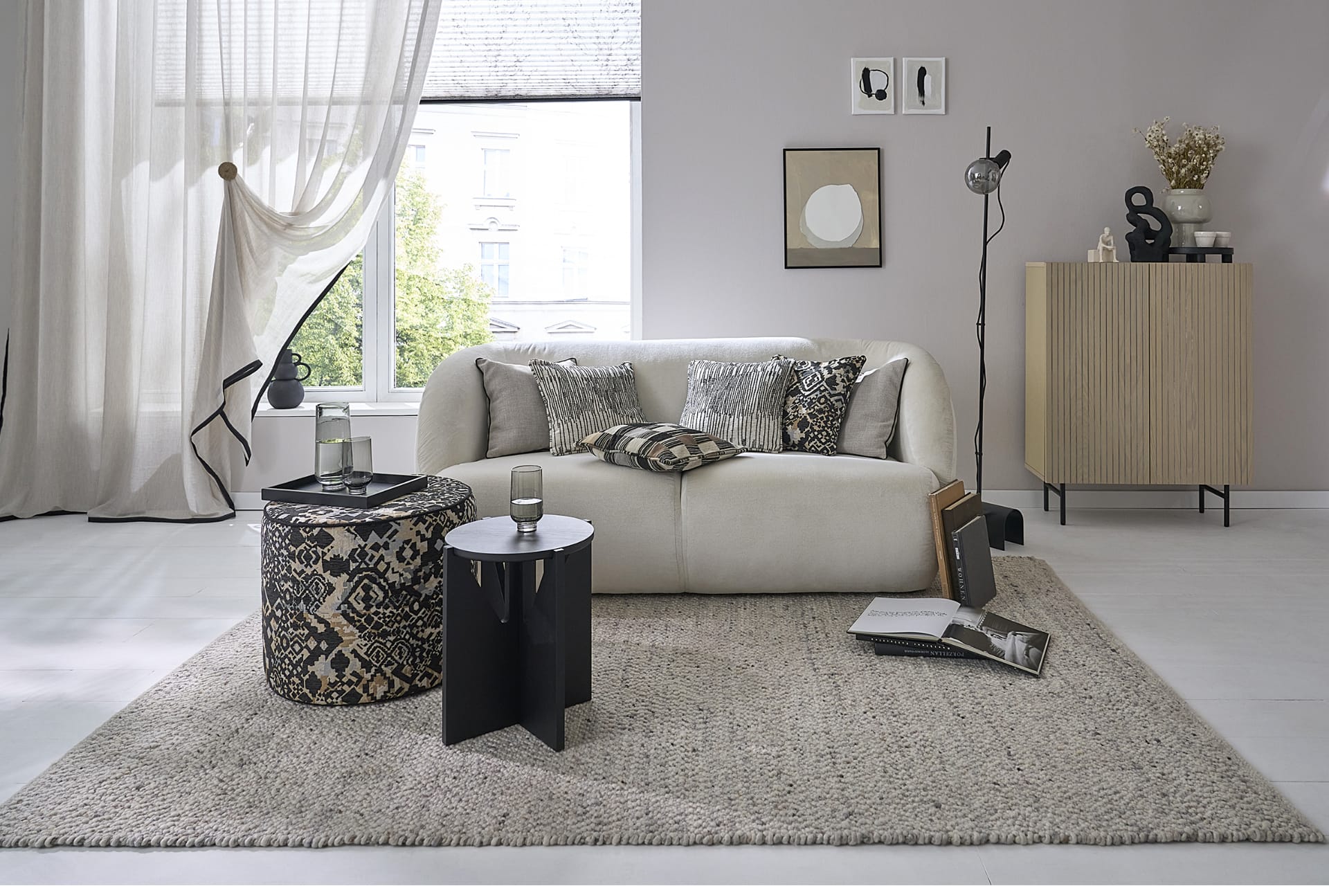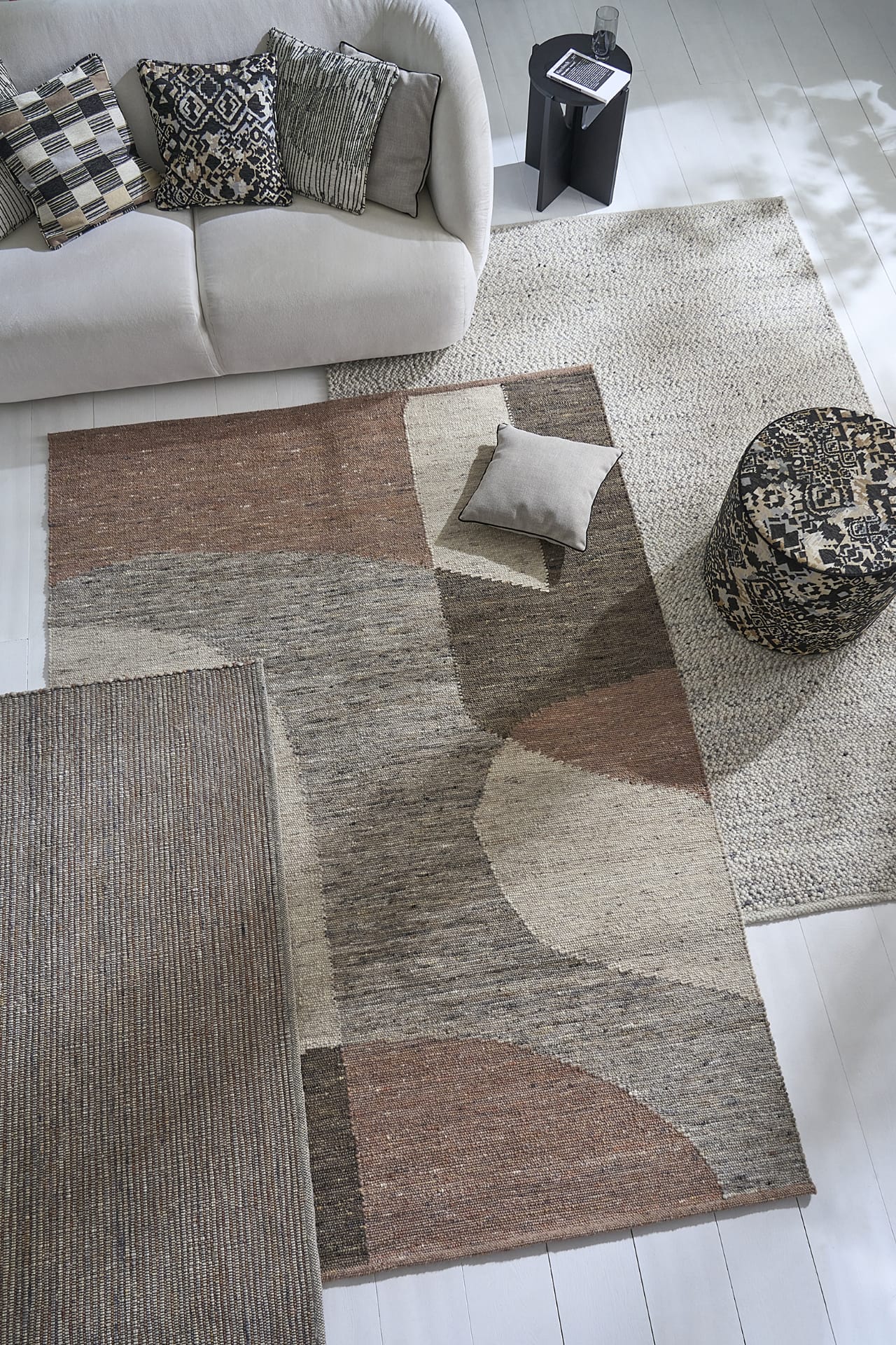 Das Teppich-Trio von Paulig since 1750 fügt sich in Layering-Manier perfekt in das Ensemble ein. Alle Teppiche sind aus gewalkter Schurwolle handgewebt und beidseitig verwendbar.